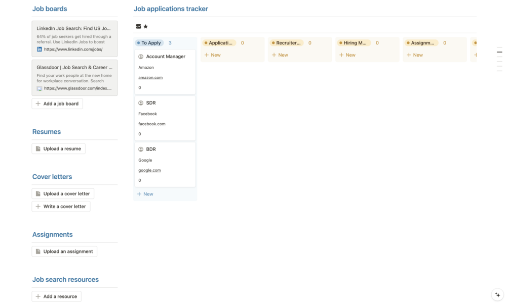 - Store your resumes, cover letters, and assignments created for specific job applications.