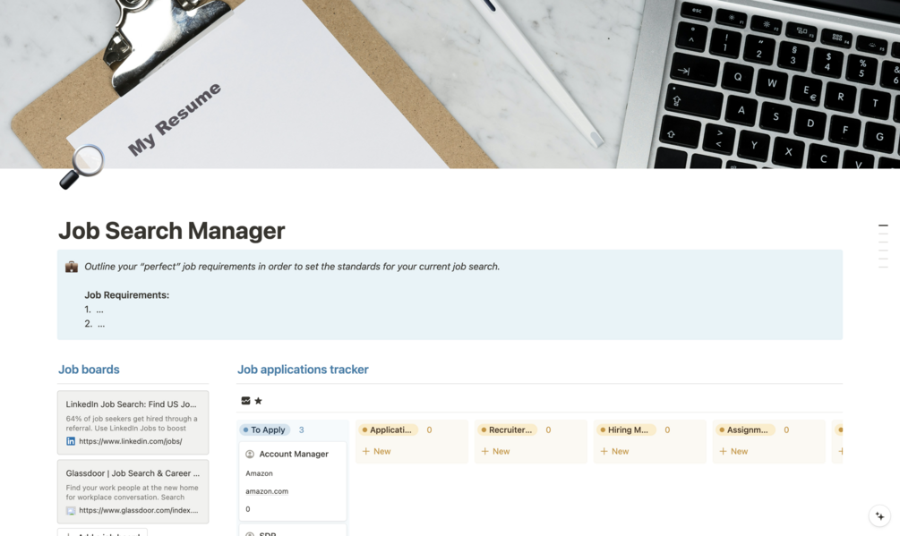This template is designed for individuals who are looking to make their job search more organized and efficient.